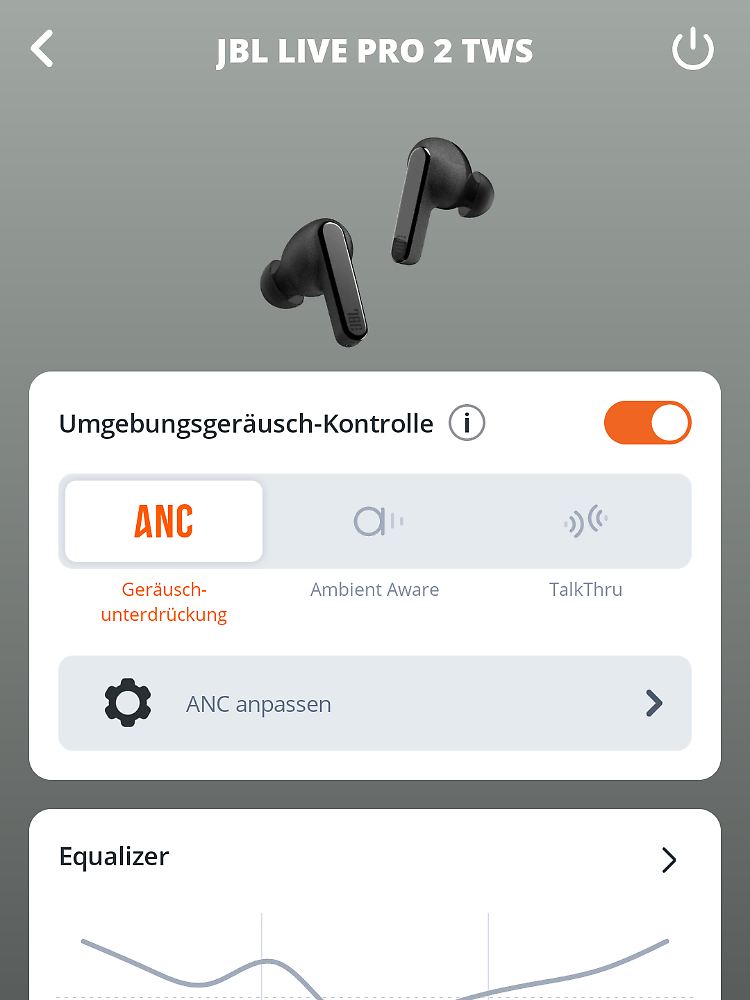 Die Anwendung überzeugt auch durch etliche weitere Funktionen. Dazu gehören ein umfangreicher Equalizer und die Möglichkeit, für eine optimale Geräuschunterdrückung den Gehörgang scannen zu lassen. Man kann die ANC-Stärke selbst bestimmen oder man wählt die adaptive Geräuschunterdrückung. Das heißt, sie passt sich automatisch an den Geräuschpegel der Umgebung an.