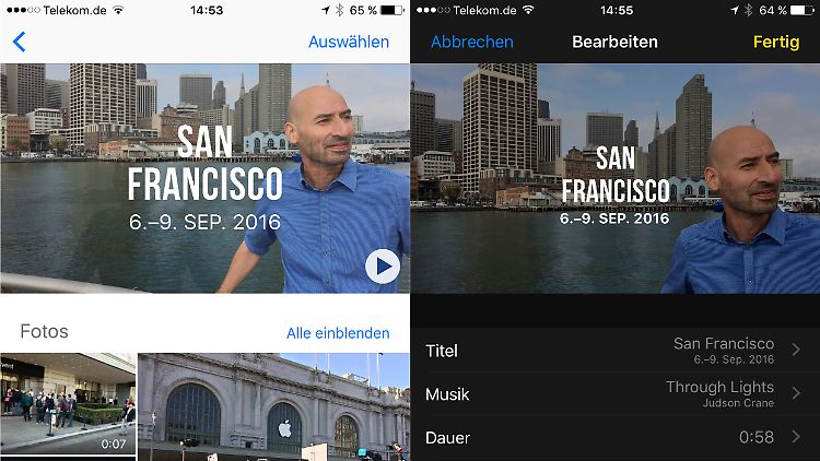 Nutzer, die gerne mit dem iPhone fotografieren und filmen, dürfen sich auf die neue Funktion "Andenken" in der Fotos-App freuen. Wie die meisten Neuerungen in iOS 10 hat sie Apple nicht erfunden, aber ausgesprochen gut umgesetzt. Apple bietet in der Funktion verschiedene aus Orten oder Zeiträumen erzeugte Alben an, aus denen sich die Nutzer animierte Diashows erstellen lassen können. Das Ergebnis sieht gewöhnlich klasse aus, man kann aber auch Bilder und Videos aussortieren oder hinzufügen, den Titel ändern, die Länge bestimmen oder eigene Musik hinzufügen. Was fehlt, ist eine einfache Möglichkeit, selbst beliebige "Andenken" zu erstellen.