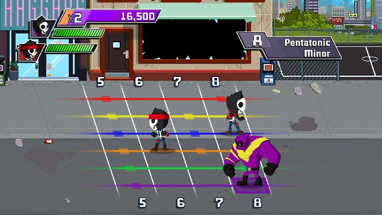 Und das passiert garantiert, wenn man nicht hundertprozentig spielsicher ist, denn die nun zu greifenden Seiten und Bünde rasen auf einer Art "Noten-Highway", entsprechend dem Tempo des Songs, auf den Guitarrista zu. Primär geht es an dieser Stelle selbst im Rhythmus-Bereich um Einzeltöne, die sich aber mit zunehmender Spielsicherheit in ganze Akkorde verwandeln. Leider bereitet das Programm einen nicht darauf vor, welcher Finger wohl den Einzelton greift, um anschließend den Fingersatz eines Akkordes zu bilden. Wurde man also am Anfang noch für seine Künste mit "Sehr gut gespielt" gelobt, gibt es in der nächsten Stufe dann nur noch ein "Hätte schlimmer sein können". Hier sollte man unbedingt den Riff-Repetitor bemühen, um den Schwierigkeitsgrad und die Geschwindigkeit ein wenig zu drosseln.