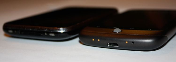 Der Akku des Google-Handys hielt im Extremtest rund zwölf Stunden durch, was keine Glanzleistung, aber bei Smartphones unter voller Belastung auch nicht schlecht ist - iPhone-Nutzer können ein Lied davon singen. Unter dem Akku sitzt die SIM-Karte und der Einschub für Micro-SD-Karten, mit denen der interne Speicher (512 MB) erweitert werden kann. Eine 4-GB-Karte war im Testpaket dabei, bis zu 32 Gigabyte sind möglich. Drei kleine Kupferkontakte neben dem Micro-USB-Eingang lassen darauf schließen, dass das Google-Handy künftig auch per Standhalterung an externe Geräten andocken kann.