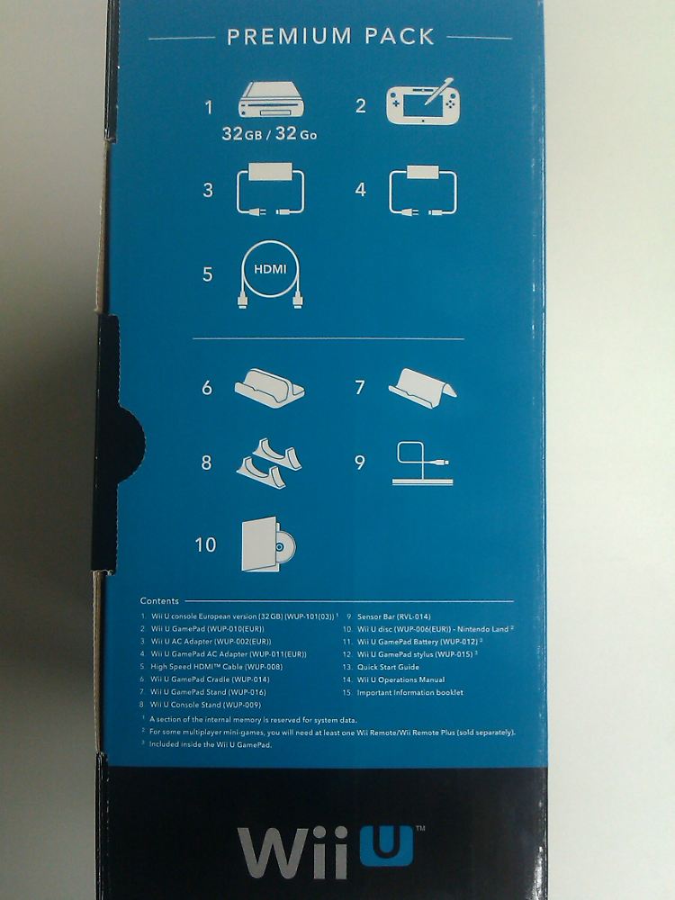 Getestet wurde die schwarze Premium-Version – in der Box liegen zusätzlich ein Ständer für Konsole und Gamepad, eine Aufladestation, die Spielesammlung "Nintendo Land" sowie ein Empfänger. Mit der Zusatzkomponente können auch alte Wii-Fernbedienungen weiter verwendet werden, ebenso wie alte Controller. Neu sind diese mit bis zu 50 Euro ziemlich teuer – für Besitzer der Vorgängerkonsole lohnt sich die Premium-Wii-U allein schon deshalb. Zudem sind von den acht Gigabyte nur rund sieben nutzbar, die anderen gehen für Systemdateien drauf. Bei der großen Ausführung bleiben 29 Gigabyte.