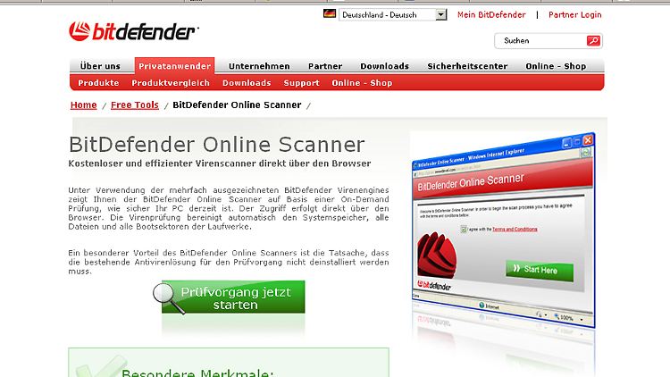 Erste Hilfe im Verdachtsfall Online-Virenscanner