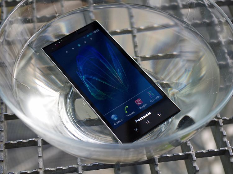 Ansonsten ist das Eluga sehr gut verarbeitet und macht einen hochwertigen Eindruck. Was man dem 103 Gramm leichten Schönling aber ganz und gar nicht ansieht: Panasonic hat es wasserfest und staubdicht gemacht. Tatsächlich bereitete dem Smartphone im Test ein zehnminütiges Wasserbad keine Probleme. Ein typisches Outdoor-Handy ist das Eluga deswegen aber nicht. Dazu wirkt es doch zu fragil. Man könnte sich eher vorstellen, dass das Gerät beim Plaudern in der Badewanne abtaucht oder keck seitlich im Bikinihöschen getragen mit in den See genommen wird. Ein weiteres denkbares Szenario könnte ein Waschgang in der Hemdentasche sein. Ob das Eluga so etwas überlebt, sollte man aber besser nicht ausprobieren.