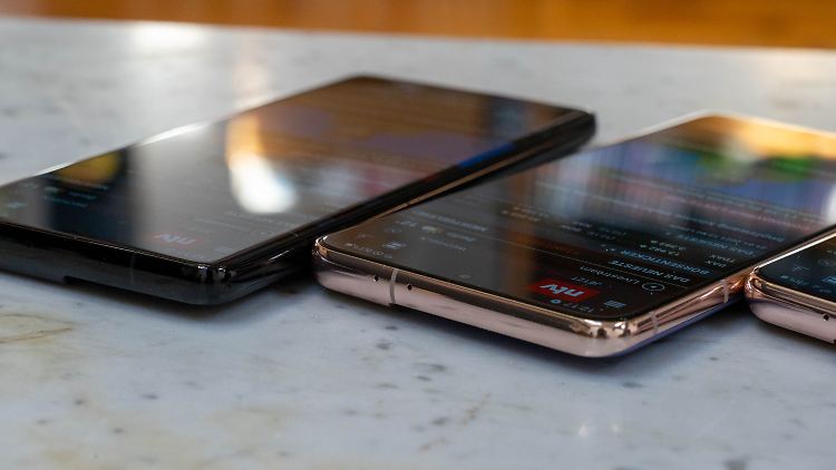 Mit einer Pixeldichte von 421 ppi ist es immer noch knackig scharf und man würde den Unterschied zu einer höheren Auflösung nur beim Stromverbrauch merken. Das gilt auch noch für das Galaxy S21+, dessen Display 6,7 Zoll misst und auf 394 ppi kommt. Wichtiger ist, dass die Panels eine hohe Bildwiederholrate von 120 Hertz (Hz) unterstützen. Diesen Unterschied kann man nämlich mit bloßem Auge leicht sehen, unter anderem weil die Schrift beim Scrollen durch Texte nicht zittert wie bei den üblichen 60 Hz. Angenehm ist, dass die Bildschirme an den Rändern nicht gebogen, sondern flach sind.