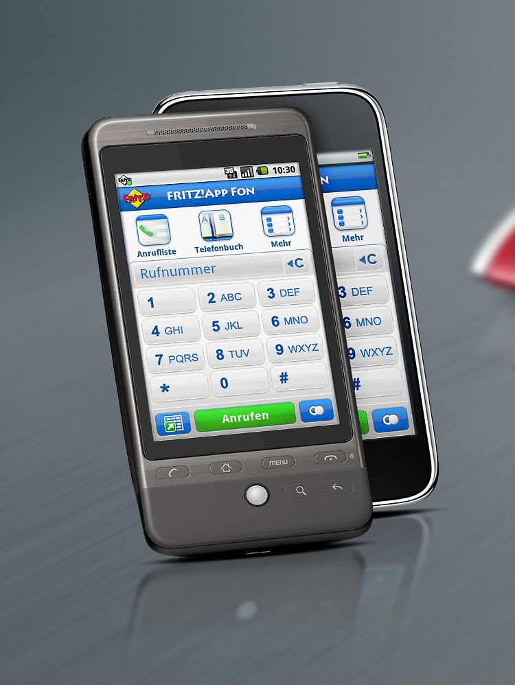Mit Hilfe der Fritz!App Fon lässt sich das Smartphone per WLAN mit der Fritz!Box verbinden. Das Smartphone fungiert dabei als IP-Phone. Da bei den meisten Telefonflatrates am DSL-Anschluss die Minutenpreise ins Mobilfunknetz relativ hoch sind, kann man mit der App Nummerkreise festlegen, die auch weiterhin über den Mobiltarif angerufen werden sollen. Außerdem kann man eingehenden Gesprächen, die über die Fritz!Box laufen, einen eigenen Klingelton zuweisen.