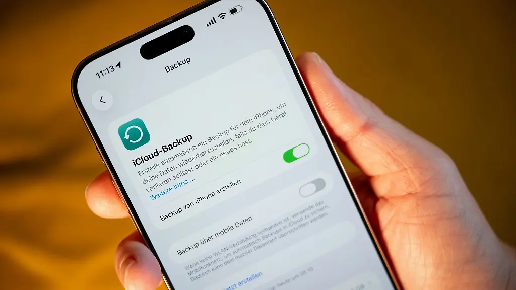Apple biete mit dem iCloud-Backup eine der umfassendsten und zugleich einfachsten Lösungen an, sagt Steffen Herget vom IT-Fachmagazin "c't". "Da ist wenig händisch nachzuarbeiten." Ist das automatische Backup einmal eingerichtet, läuft es im Hintergrund mit und erlaubt bei Bedarf eine Wiederherstellung des gesamten Geräts. Um automatische iCloud-Backups einzurichten, tippt man in den Einstellungen erst ganz oben auf den eigenen Namen und dann unter iCloud auf iCloud-Backup. Dort aktiviert man dann Backup dieses iPhone erstellen.
