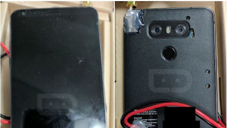 Auf den ersten Blick irritierend ist die Rückabdeckung: Statt einer Glasabdeckung hat der Prototyp einen Kunststoffrücken mit mehreren Bohrlöchern. Die Stromversorgung scheint zudem noch von einer externen Quelle zu stammen. An der Oberseite ist zudem ein nicht erkennbares Teil angeklebt, vielleicht eine Art Antenne. Beim finalen Modell wird LG wahrscheinlich auf ein wasser- und staubdichtes Gehäuse aus Glas setzen, damit das G6 kabellos geladen werden kann.