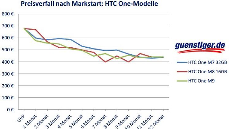 Die beiden One-Vorgänger kamen mit einer UVP von rund 680 Euro in den Handel, danach verhielt sich der Preis unterschiedlich. Läuft es wie beim M8, können M9-Käufer mit hohen Rabatten rechnen: Es wurde nach zwei Monaten bereits für 23 Prozent weniger angeboten. Beim M7 waren es hingegen nur 12 Prozent unter der UVP. Derzeit gibt es das M8 ab 430 Euro.