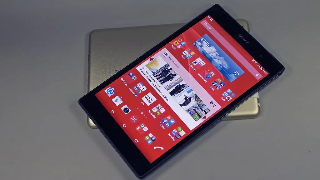 An den Stirnseiten hat das Tablet vorne zwei Lautsprecher, die zwar nicht ganz so kräftig sind wie beim iPad. Das machen sie aber bei Videos mit einem starken Stereoeffekt mehr als wett. Steckt man Kopfhörer an, zeigt das Gerät ähnlich gute Klang-Eigenschaften wie die beiden Z3-Smartphones.