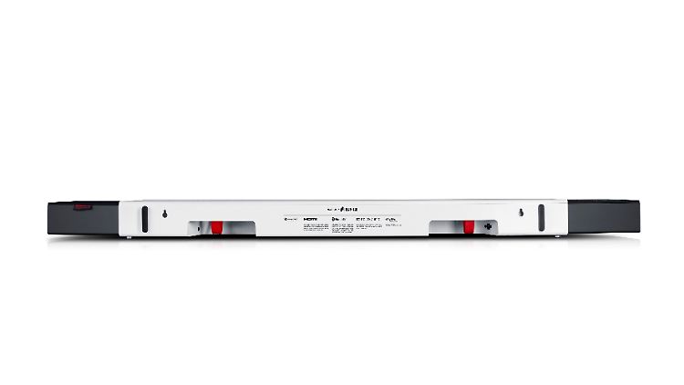 Das Design der Cinebar Lux ist gut gelungen, ihr Äußeres macht in der Kombination aus robustem Kunststoff, Gewebe und gebürstetem Aluminium einiges her. Und die leicht schräg verlaufenden Seiten bieten nicht nur akustische Vorteile, sie sehen auch gut aus. Weil die Cinebar Lux nur 7,5 Zentimeter hoch ist, passt sie normalerweise vor jeden Fernseher, außerdem kann man sie an die Wand schrauben. Hingucker ist ein LED-Display an der Vorderseite, das unter anderem die Sound-Quelle anzeigt. Wenn sie stört, kann man sie dimmen oder ganz ausschalten. Zur Not kann man auch die wichtigsten Einstellungen über Tasten auf der Oberseite der Soundbar vornehmen.