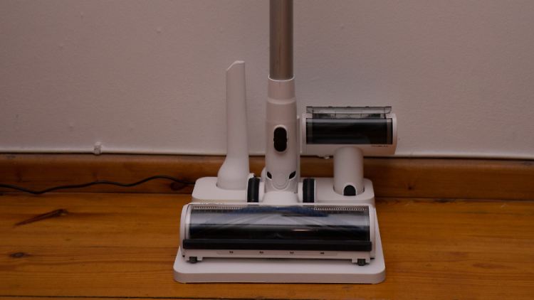 Die Laufleistung ist in Ordnung, wenn man den Staubsauger im sparsamen Auto-Modus arbeiten lässt. Das Gerät hält dann je nach Verschmutzung 20 bis 30 Minuten durch. Für kleinere Wohnungen reicht das locker aus, Tineco gibt maximal 130 Quadratmeter an. Bei komplizierteren Böden oder größeren Flächen empfiehlt es sich jedoch, einen zweiten Akku anzuschaffen. Bis eine Batterie in der Dockingstation von 0 auf 100 Prozent geladen ist, vergehen fast vier Stunden.