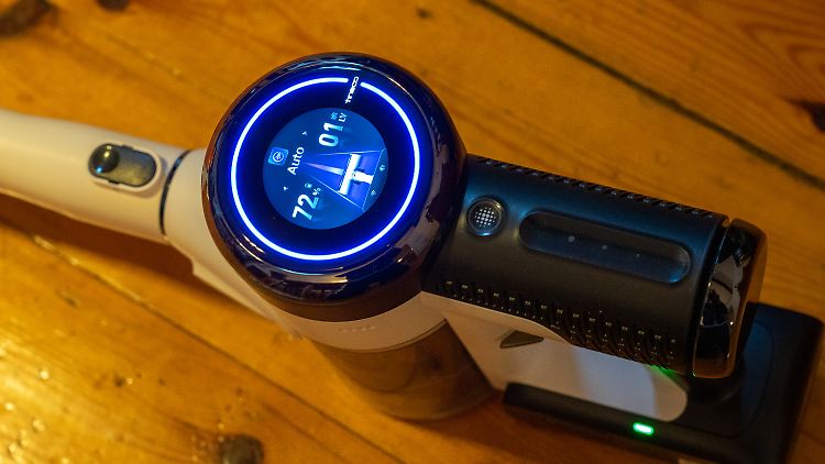 Ist das doch nötig, kann man über die Touch-Fläche streifen, und die Leistung in sechs Stufen anpassen. Wahlweise tippt man auf die Touch-Taste, um zwischen Auto-Modus und maximaler Saugkraft zu wechseln. Mit der Taste beendet man auch den manuellen Modus.