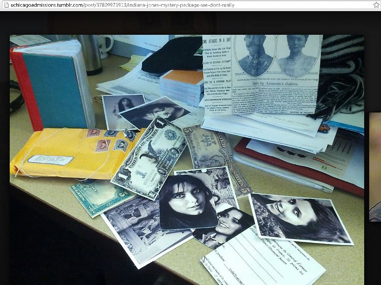 Das zugesandte Buch sah verblüffend echt aus, mitsamt Fotos von Indys Ex-Geliebter, Landkarten, handschriftlichen Hinweisen, und einigem weiteren Material. "Wir wissen nicht, wie es zu uns gekommen ist", schrieb die Universität ratlos in ihrem Blog, veröffentlichte einige Fotos und bat um Mithilfe bei der Spurensuche. Eine exotische Bewerbung auf einen Studienplatz hielten die Mitarbeiter für möglich, und riefen die betreffende Person auf, sich zu melden.