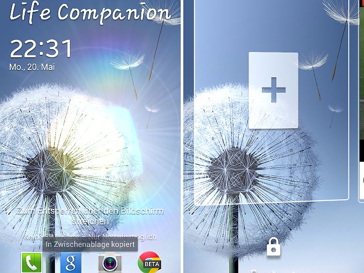 - Lockscreen mit mehreren Widgets, größenverstellbarer Uhr und Lichteffekt