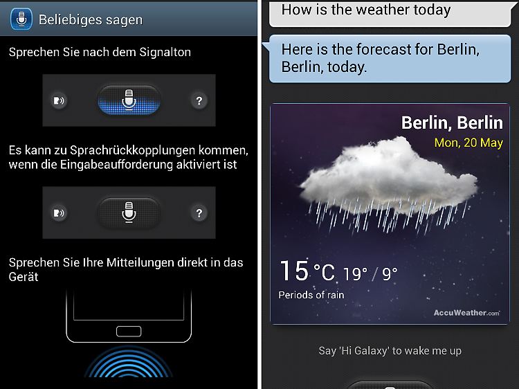 Vielleicht erhält das fertige Update eine Kamera-App, die viele Funktionen vom S4 übernimmt. Technisch wäre dies im Gegensatz zu vielen Gesten, für die das neue Galaxy-Flaggschiff einen zusätzlichen Sensor hat, möglich. Bisher findet sich aber nur eine - sehr praktische Änderung - in der Vorabversion: Um Verwackler zu vermeiden, kann man die Kamera jetzt per (englischem) Sprachbefehl ("Smile", "Cheese", "Capture" und "Shoot") auslösen.