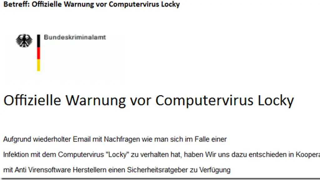 Kriminelle verschicken täuschend echt aussehende E-Mails, die angeblich vom Bundeskriminalamt stammen. Sie warnen vor dem Erpresser-Trojaner Locky, sind jedoch selbst eine gefährliche Falle.