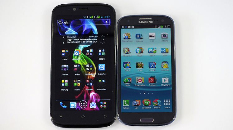 Das Design ist nicht besonders aufregend, es erinnert vor allem an das Samsung Galaxy S. Allerdings hat das Archos-Smartphone keinen echten Home-Button, sondern nur drei Sensor-Tasten unter dem Displ ay.