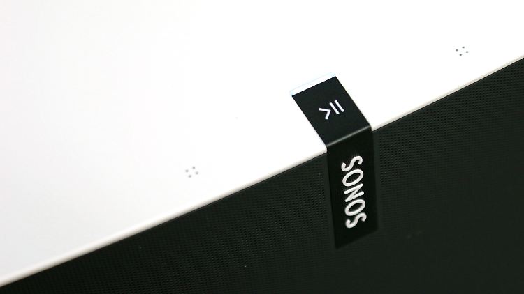 Optisch hat der neue Play 5 außer der ungefähren Größe nichts mit seinem Vorgänger gemein. Im Prinzip hat er das Design des 3ers übernommen und kann daher so wie dieser waagrecht und senkrecht aufgestellt werden. Statt physischer Tasten hat Sonos beim Play 5 Touch-Sensoren über seinem Logo platziert, über die unter anderem die Lautstärke per Wischgesten eingestellt werden kann.