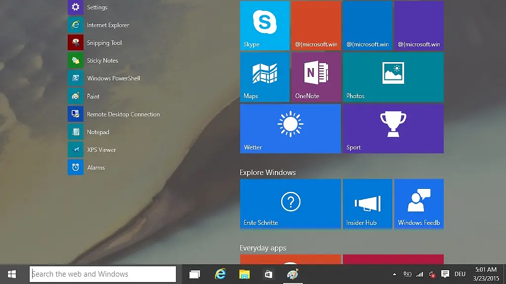 Ein neues, transparentes Startmenü sieht richtig gut aus und Apps können jetzt aus der Sammlung oder "Am häufigsten genutzt" dort direkt angeheftet werden. Nach wie vor ist der Internet Explorer an Bord, der Nachfolger "Spartan" kommt vermutlich mit einem der folgenden Builds. In dieser Version ist es auch möglich, die eigenwilligen Icons zu begutachten, die Microsoft zur Debatte stellt.