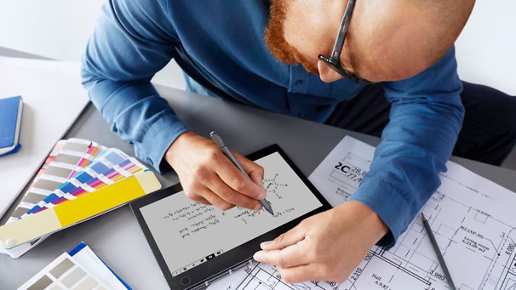 Damit hat das Lenovo-Gerät zwei Bildschirme: Das herkömmliche Farb-Display verfügt über eine Auflösung von 2560 mal 1600 Pixel (IPS LCD) mit der üblichen Windows-10-Oberfläche. Das Bild erscheint scharf, die Farben nicht übertrieben bunt. Die Auflösung des E-Ink-Bildschirms ist mit 1920 mal 1080 Pixel nicht ganz so hoch. In der Praxis stört das nicht.