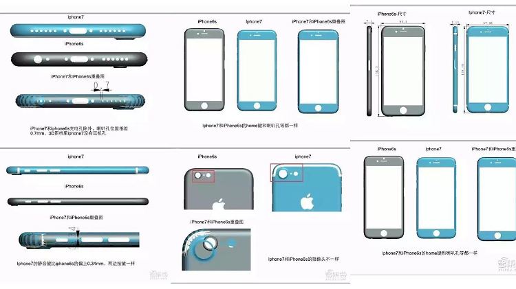 Demnach ist das Gehäuse des iPhone 7 nur minimal kleiner und einen halben Millimeter dicker als sein Vorgänger. Die Öffnung für die Kameralinse ist größer und etwas nach links gerückt, die Kunststoffstreifen für die Antenne laufen am Gehäuserand entlang.