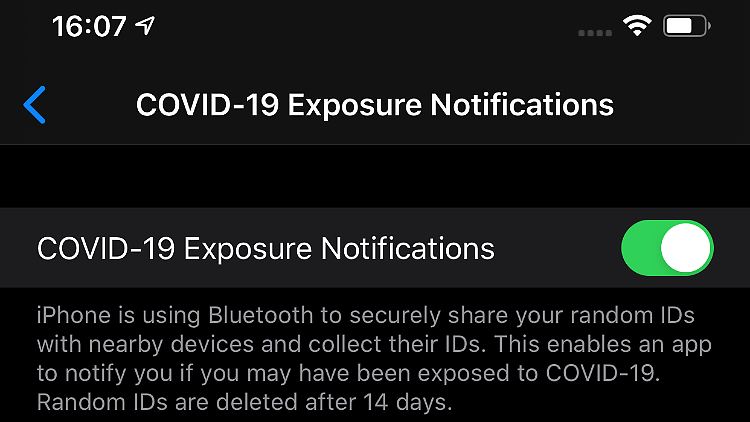 Man findet die Funktion in den Einstellungen, wenn man unter Datenschutz die Health-App anwählt. In der Beta von iOS 13.5 heißt sie "COVID-19 Exposure Notifications". Tippt man sie an, erhält man eine kurze Erklärung, wozu die neue Bluetooth-Funktion dient: Das iPhone speichert zufällig generierte IDs von Geräten mit einer Corona-Warn-App, die sich in der Nähe befinden, und gibt umgekehrt eine ID an die anderen Smartphones weiter. Das ermögliche Apps, den Besitzer zu informieren, wenn er sich mit Covid-19 infiziert haben könnte. Die zufälligen IDs werden nach 14 Tagen automatisch gelöscht.