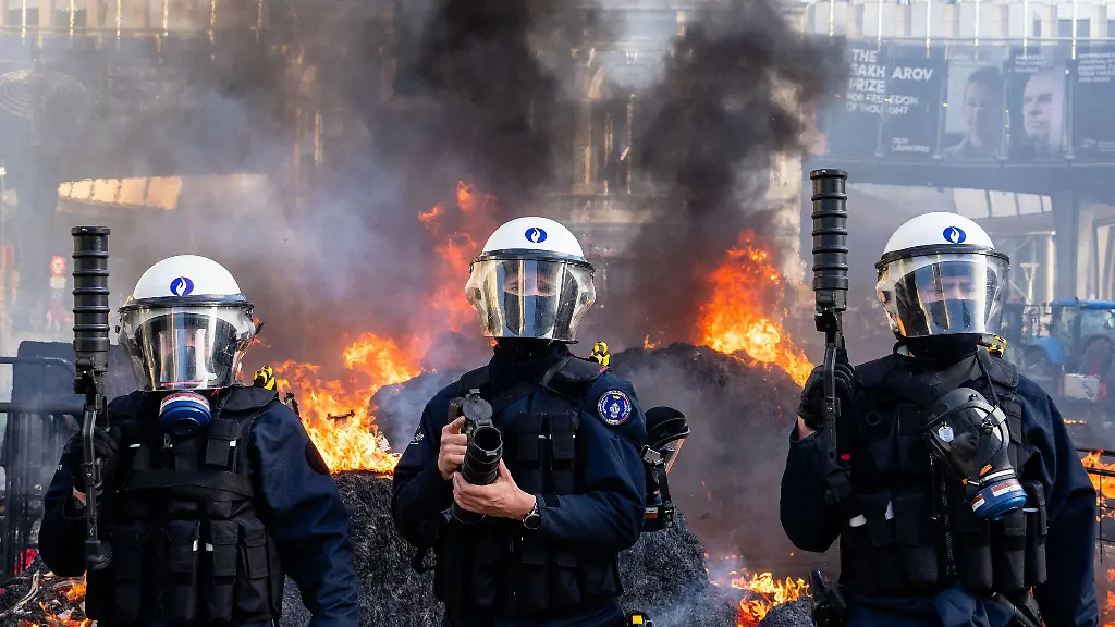 In der belgischen Hauptstadt demonstrierten laut Veranstalter etwa 10.000 Menschen, die Polizei zählte etwa 7.300 Personen und Hunderte Traktoren. Die Beamten setzten Wasserwerfer und Tränengas ein, nachdem Demonstranten versucht hatten, Absperrungen zu durchbrechen.