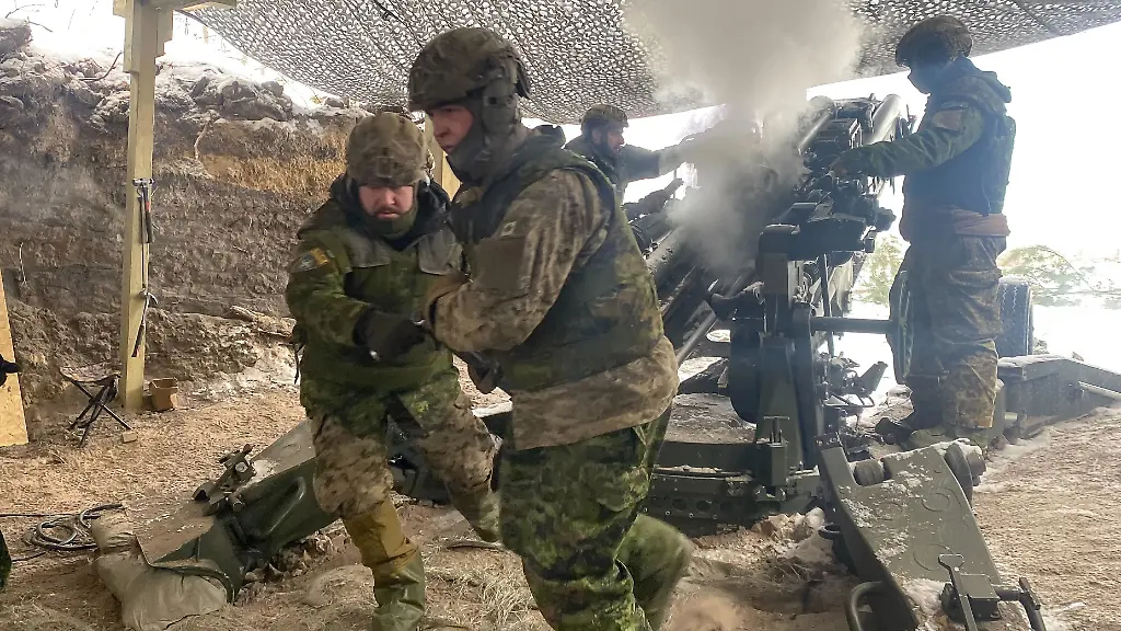 Während der Militärübung "Striking Thunder" trainieren Soldaten der von Kanada geführten multinationalen Nato-Brigade in dem baltischen EU-Land das Gefechtsschießen mit M777-Haubitzen aus einer getarnten Stellung. "Wir üben sowohl das Bekämpfen von Zielen mit Artillerie als auch das Auffinden dieser Ziele", sagte der kanadische Oberstleutnant Andrew Curr auf dem Truppenübungsplatz in Adazi.