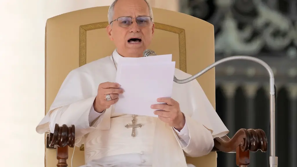 18-02-2026-Vatikan-Vatikanstadt-Papst-Leo-XIV-spricht-auf-dem-Petersplatz-waehrend-seiner-woechentlichen-Generalaudienz-unter-freiem-Himmel