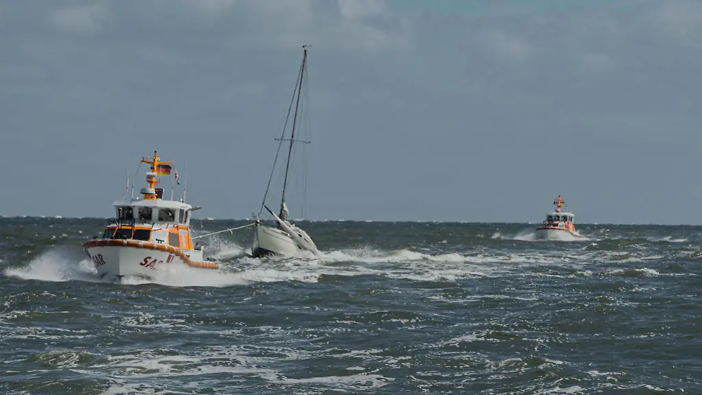 Ebenfalls am Samstag retteten Helfer einen Vater und seinen Sohn vor der Nordseeinsel Baltrum aus Seenot. Die beiden Männer waren bei starkem Seegang durch Schäden an ihrem achteinhalb Meter langen Segelboot und die Verletzung eines der Segler in eine lebensbedrohliche Notlage geraten. Das Boot war manövrierunfähig geworden und wurde nach Norderney geschleppt, nachdem der Verletzte medizinisch versorgt worden war.