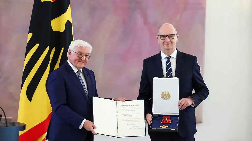 Bundespräsident Frank-Walter Steinmeier hat sechs amtierende und einen ehemaligen Ministerpräsidenten mit dem Bundesverdienstkreuz ausgezeichnet. Er würdigte damit am Freitag deren langjährigen und engagierten Dienst für die Demokratie, wie er bei der Verleihung der Orden sagte.