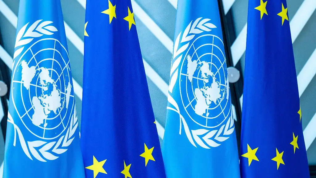 Flag-for-the-coming-of-the-Secretary-General-of-the-United-Nations-Antonio-Guterres-at-the-summit-of-Heads-of-State-and-Government-of-the-European-Union-at-the-European-Council-in-Brussels-in-Belgium-on-20th-of-March-2025-EU-leaders-discussed-Ukraine-the-Middle-East-and-competitiveness-and-European-defence-and-migration-and-oceans-and-multilateralism-and-the-Western-Balkans-Drapeau-pour-la-venue-Secretaire-general-des-Nations-unies-Antonio-Guterres-au-sommet-des-chefs-d-etat-et-de-gouvernement-de-l-Union-Europeennne-au-Conseil-Europeen-a-Bruxelles-en-Belgique-le-20-Mars-2025-Les-dirigeants-de-l-UE-ont-debattu-de-l-Ukraine-et-du-Moyen-Orient-et-de-la-competitivite-et-de-la-defense-europeenne-et-des-migrations-et-des-oceans-et-du-multilateralisme-et-des-Balkans-occidentaux