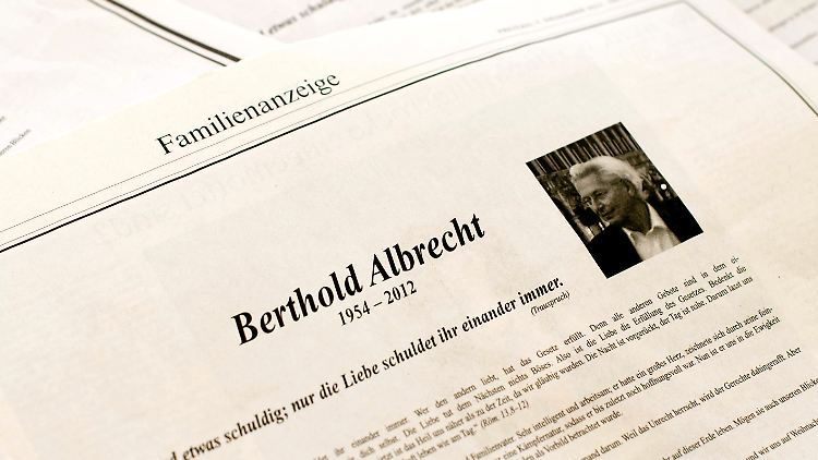 In der ganzseitigen Anzeige gedenkt Ehefrau Babette mit "Kindern und Familienhund" seiner. Er sei ein "sehr lieber, überaus großzügiger Mensch, vorbildlicher Ehemann und Familienvater" gewesen. Als "Kämpfernatur" sei er bis zuletzt hoffnungsvoll gewesen.