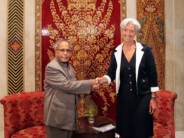 Auf Werbetour in Indien: Christine Lagarde mit ihrem indischen Amtskollegen, Finanzminister Pranab Mukherjee (links).