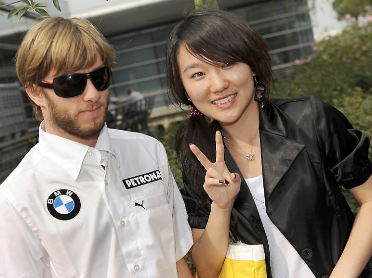 War als Sympathieträger für BMW unterwegs in China: Rennfahrer Nick Heidfeld (links), hier mit einer Bewunderin in Shanghai (Archivbild).
