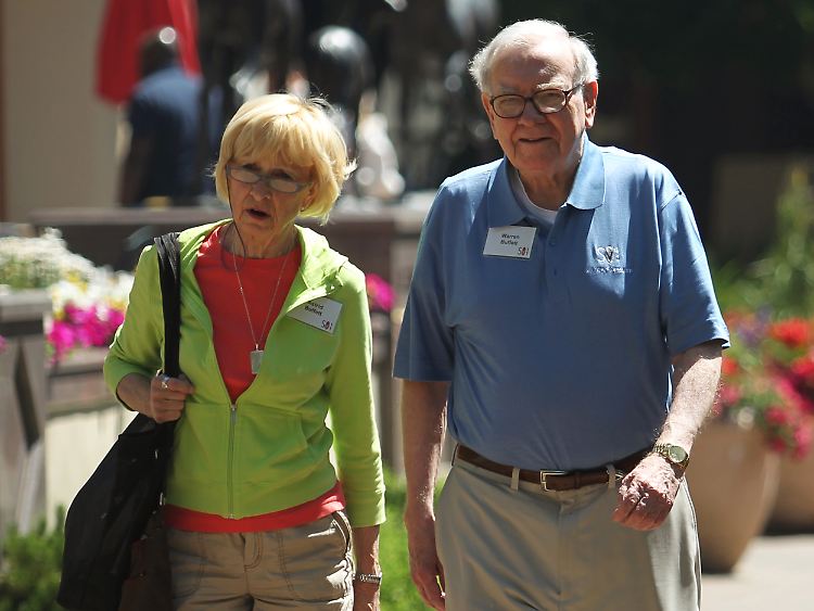 Zwei der einflussreichsten Amerikaner unter der Sonne: Herr und Frau Buffet auf dem Weg zu Sun Valley Conference Anfang Juli.