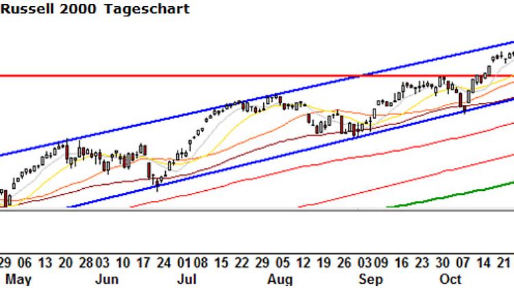 Der MDax zeigt als deutscher Nebenwerteindex ein ähnliches Verhalten wie sein US-Pendant, der "Russell 2000". Da uns für den US-Index tiefere Analysedaten vorliegen, gleichzeitig der MDax und der Russell 2000 einen ähnlichen Verlauf aufweisen, lohnt ein Blick auf die "Fußspuren" des US-Nebenwerteindex.
