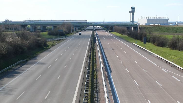 Leere Autobahn in Schkeuditz, Sachsen - eine Auswirkung der Kontaktbeschränkungen aufgrund der Corona-Krise.