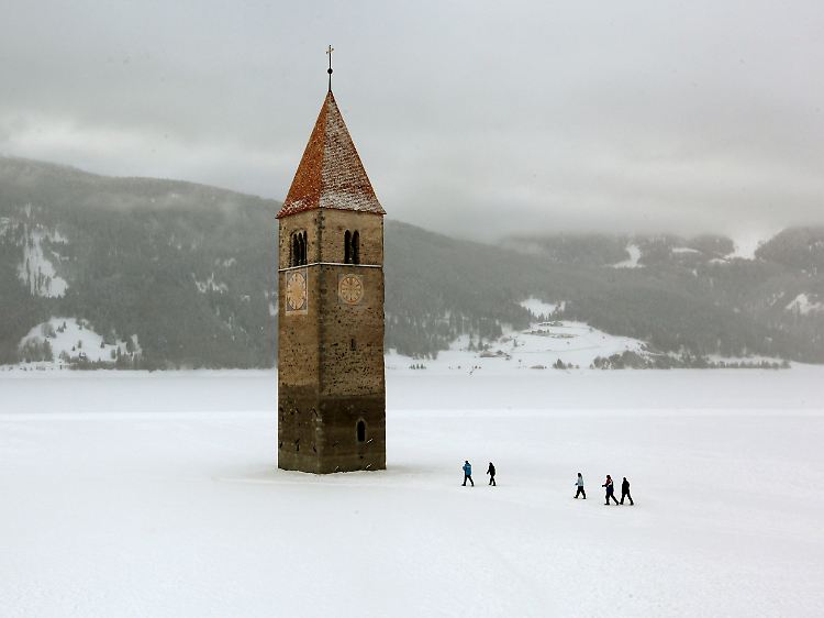 Eingefrorenes Ende: Das Dorf Graun in Südtirol versank planmäßig in einem Stausee - der offene Immobilienfonds Degi Europa scheiterte letztendlich an der börsentäglichen Verfügbarkeit seiner Anteile.