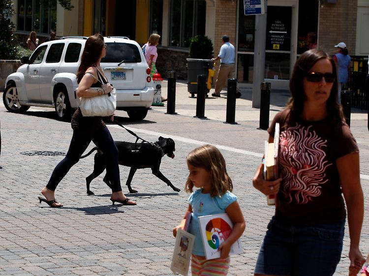 Das amerikanische Stadtleben im Wandel: Konsumenten flanieren durch die landesweit beachtete Neugestaltung des "Rockville Town Square" im Bundesstaat Maryland.