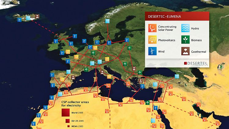 In Ägypten denkt man schon einen Schritt weiter: Der dortige Energiemister sprach jüngst von Plänen, sein Land als Korridor für den Energietransport in Nachbarländer zu etablieren. Auch nach Europa soll Wüstenstrom fließen. Diese Idee ist nicht neu, sondern spukt schon lange in den Köpfen von Politikern, Managern und Forschern umher. Manifestiert hatte sie sich in Desertec.