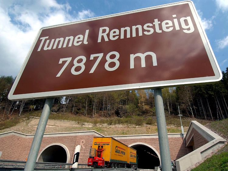Deutschlands längster Straßentunnel führt in Nord-Süd-Richtung unter dem Thüringer Wald hindurch.