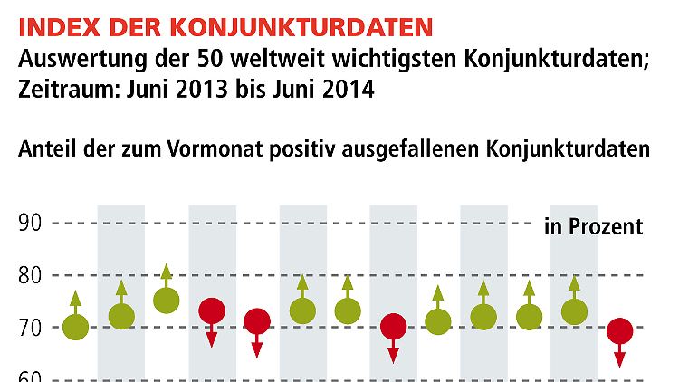 Die Industrie in den USA, Japan, Deutschland in Teilen Europas und Asiens haben im ersten Halbjahr eine erste Reaktion auf den Anstieg der gesamtwirtschaftlichen Nachfrage weltweit mittels einer Erhöhung der Kapazitäten gezeigt. Dies kann nach Einschätzung von Markus Zschaber als Verbesserung des Sentiments in der Weltwirtschaft verstanden werden. Da es im Nachfrageanstieg gewisse zeitliche Verzögerungen gibt, bis die Kapazitäten ausgelastet sind, spricht der Vermögensverwalter aktuell von einer zyklischen Pause bzw. von einem temporären Abflachen der Beschleunigung im globalen Konjunkturgefüge. Diese Entwicklung spiegelt der "Index der Konjunkturdaten" wider und weist aktuell ein Niveau von 69 % (Vormonat: 73%) aus.