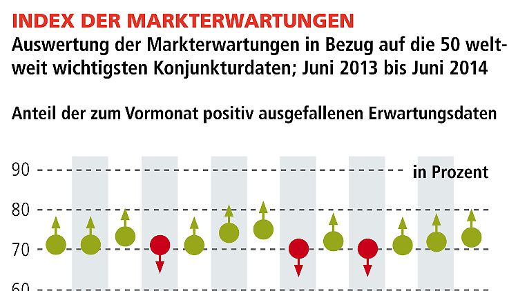 Ein interessantes Phänomen kann derzeit bei den zukünftigen Erwartungen der Marktteilnehmer erkannt werden. "Die Skepsis ist weiterhin ausgesprochen groß, wenn ich auf die Datenanalyse zum "Index der Markterwartungen" schaue. Die meisten Anleger und Ökonomen scheinen der globalen Erholung immer noch wenig Vertrauen zu schenken und lassen sich von den geopolitischen Krisenherden negativ beeinflussen. Ich glaube die wenigsten erkennen den wechselseitigen Zusammenhang zwischen der liquiditätsgetriebenen Geldpolitik und dem daraus sich jetzt vermehrt freisetzenden Kapitalüberhang in der Realwirtschaft. Zwar erwarten wir auch keine überbordende Boomphase in der Weltwirtschaft, allerdings scheint eine Rückkehr zu 4% Wachstum realistisch", so Zschaber. Dies bescheinigt auch der "Index der Markterwartungen" mit einem leicht angestiegenen Niveau von 73% (Vormonat: 72%). Nach Einschätzungen des Vermögensverwalters, sind die niedrigen Erwartungen aber eine gute Versicherung gegenüber zyklischen Pausen. Konjunkturbezogene Euphorie, wie auch zu viel Euphorie am Aktienmarkt sorgen in der Regel für zu hohe Risikoneigung, die schnell enttäuscht werden kann.