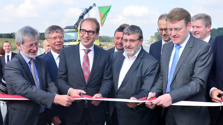 Verkehrsminister Dobrindt (3.v.l.) bei der Eröffnung der A9 in Triptis.
