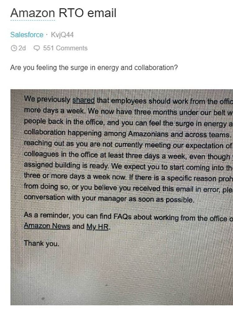 Um seine Beschäftigten zur Rückkehr ins Büro zu bewegen, kämpft Amazon in den USA mit härteren Bandagen. Per E-Mail werden Homeoffice-Fans direkt aufgefordert, Präsenz zu zeigen. Andernfalls droht Entlassung. Eine Welle der Empörung bricht sich Bahn: "Soll das den Leuten Angst machen?"
