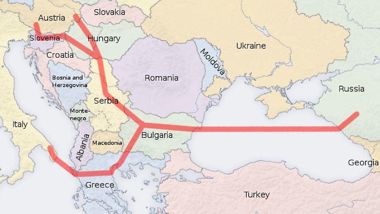 Die EU legt Gespräche über die Gaspipeline South Stream auf Eis. Sie soll eigentlich ab 2015 Gas von Anapa, Russland, durchs Schwarze Meer nach Griechenland, Italien und Österreich transportieren.