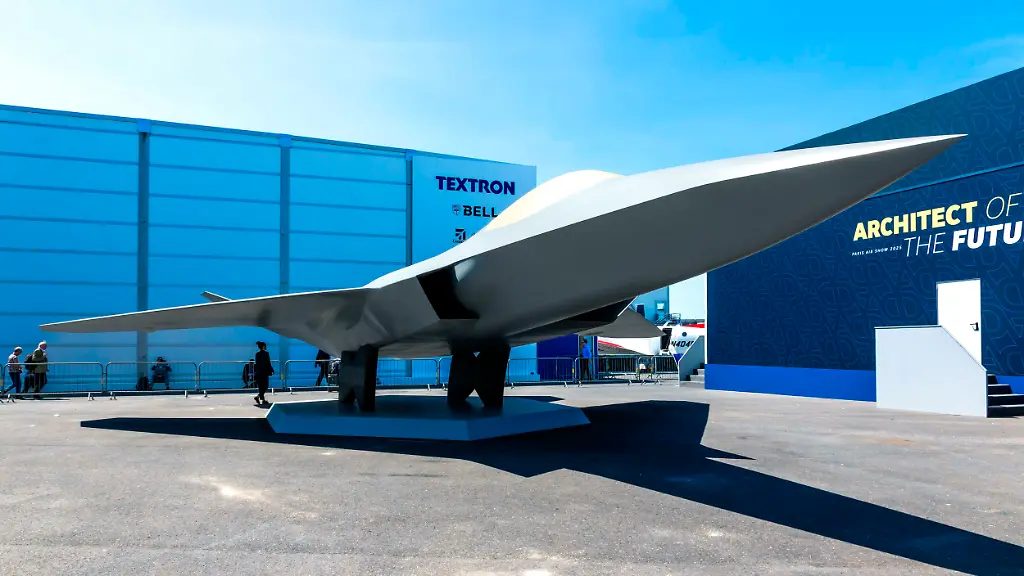 Mock-up-of-the-NGF-Future-Combat-Air-System-FCAS-from-Dassault-Aviation-Airbus-and-Indra-Sistemas-on-display-at-the-Paris-Air-Show