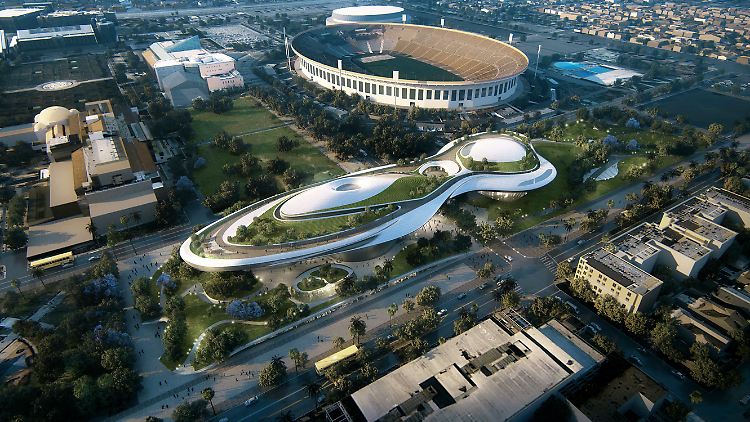 Auch einen konkreten Entwurf für den Ausstellungskomplex gibt es bereits. Die Konstruktionen des chinesischen Architekten Ma Yangsong zeigen einen Bau in der Form eines futuristischen Raumschiffs, umgeben von Parkanlagen. Direkt nebenan liegt das Los Angeles Memorial Coliseum, ein gigantisches Football-Stadion. Im "Museum für Narrative Art" sollen künftig neben den 40.000 Exponaten ein Lernzentrum, vier Kinosäle, eine Bibliothek, mehrere Konferenzräume, ein Café und ein Restaurant Platz finden. Allein der geplante Museumshop dürfte für "Star Wars"-Fans ein Mekka sein und reichlich Geld einbringen.