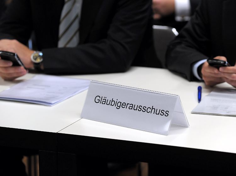 Zugestimmt: Mitglieder des Gläubigerausschusses empfangen vor Beginn der Versammlung letzte Anweisungen.